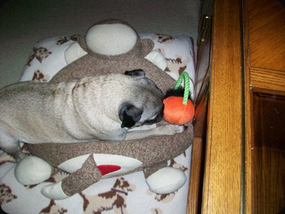 The pumpkin stuffies are absolutely wonderful! Mitzu is a jealous (and especially jealous of that cute cute cute sock monkey bed!!!! oh my goodness!) I bet there was a lot of snoring going on after all that play!